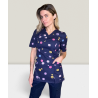 Liibuv, tumesinine, lillelise trükiga tuunika. Lühikesed varrukad.