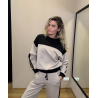 Šis stilīgais un mūsdienīgais brīvā laika kostīms ir lieliska izvēle tām, kuras novērtē komfortu un modernu dizainu. Kontrastējošā krāsu kombinācija un brīvais piegriezums kostīmam piešķir īpašu izteiksmīgumu.