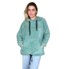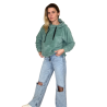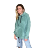 Džemperis ar "ķengura" kabatu, ar kapuci, apakšā sasienams ar šņorēm.